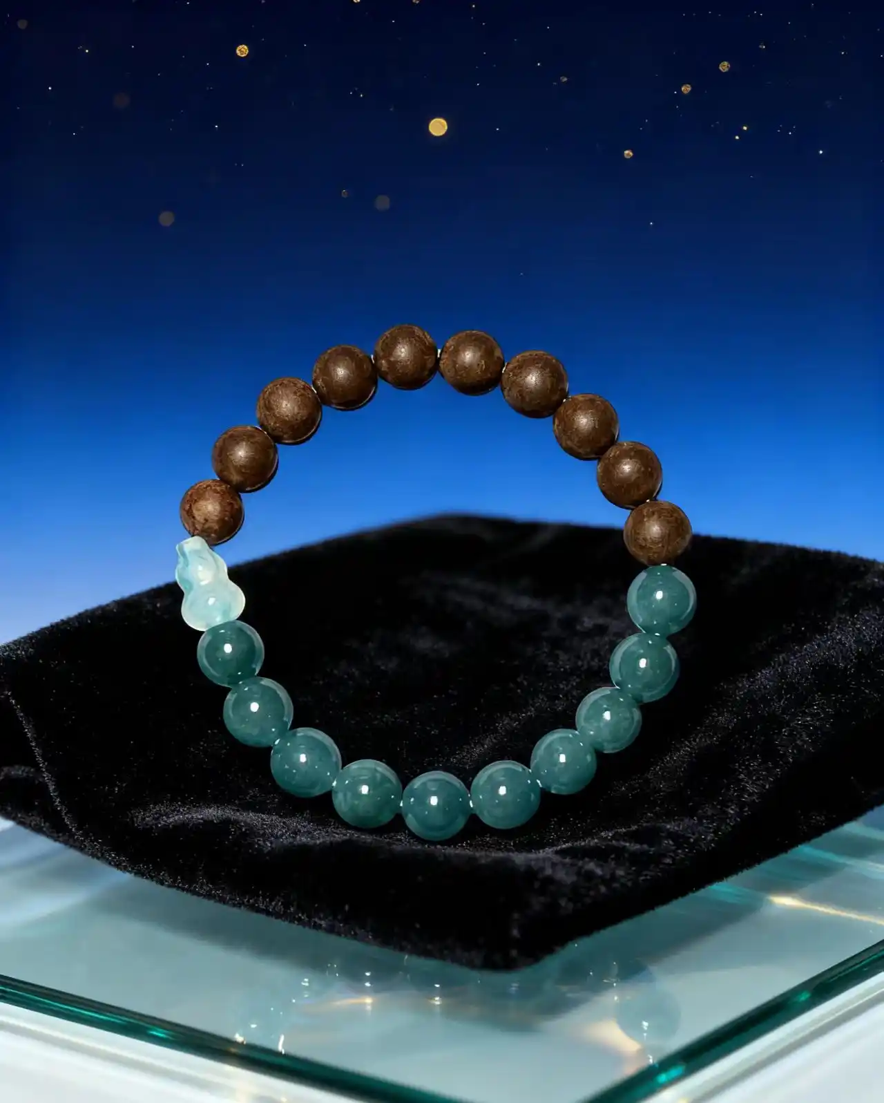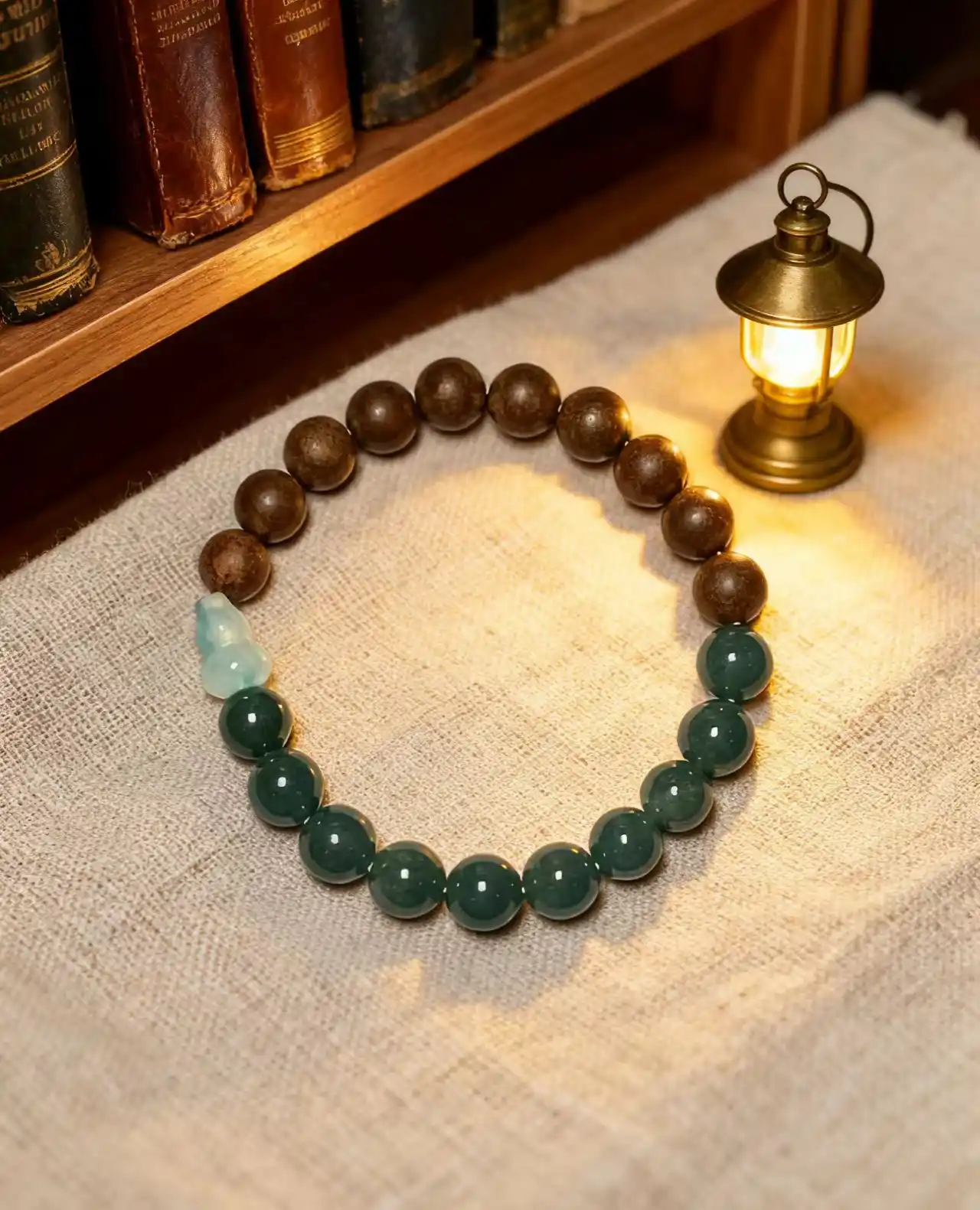 Crafted with green jade, this bracelet is designed to bring a sense of serenity and inner peace while promoting spiritual harmony and a connection to nature.